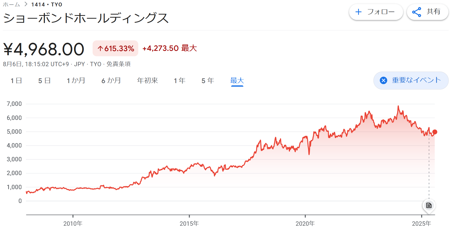 最後に今後1~10年でショーボンドホールディングスの株価が大きく上昇するストーリがあれば教えてほしいな