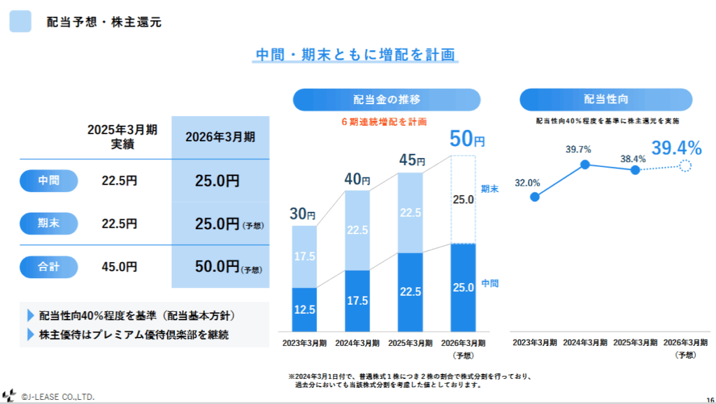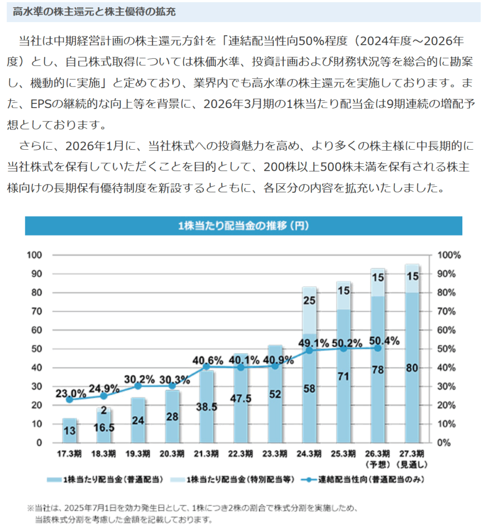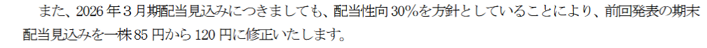 配当は配当性向 40%とDOE 4.5%の高い方を採用。