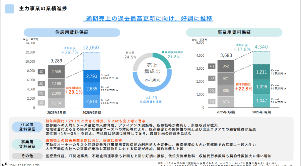 事業内容は家賃債務保証を主力に、医療費保証や養育費保証などの保証関連サービスを展開