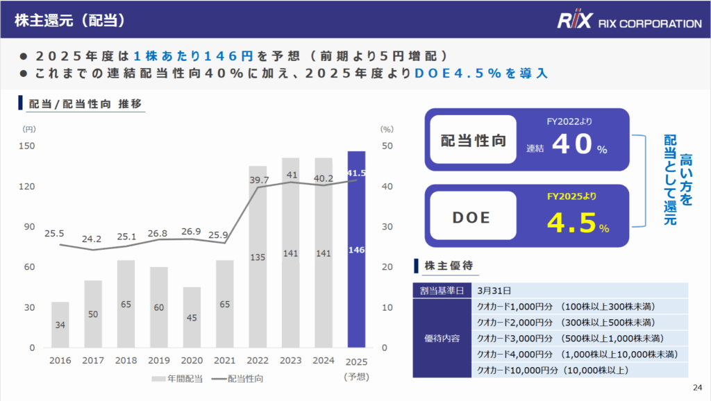 配当は配当性向 40%とDOE 4.5%の高い方を採用。